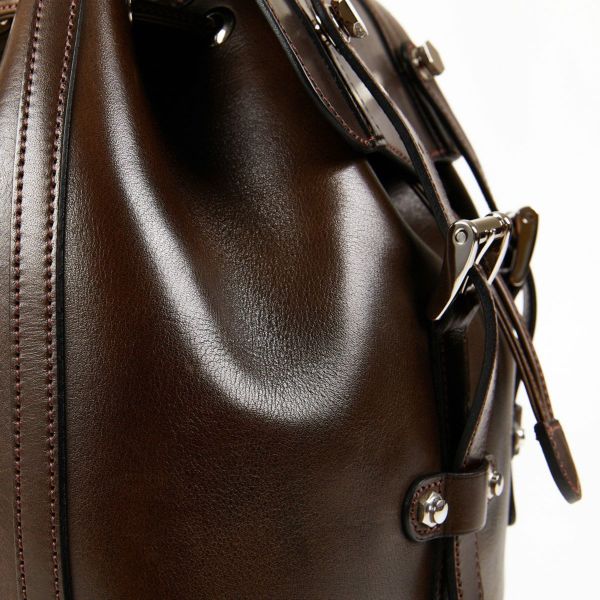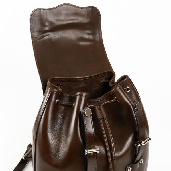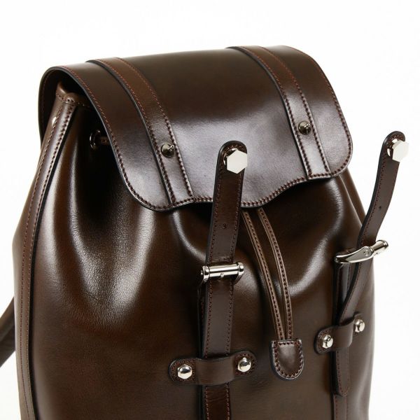 「ビジネスバッグのように、堅牢でクラシックな雰囲気のあるバッグパックを」という想いを実現したのがこちらの一品。 革には万双独自の皮革「双鞣和地(そうなめしわじ)」を使用。他の革と比べると厚みがあるため、ふっくらとした形状を作り出すことは非常に困難ですが、ダレスバック専門の職人が幾度も試作を作り、上品な膨らみを持たせることに成功しました。 どこか懐かしいデザインと、革が持つ独特の雰囲気を愉しみながら末永くお使いいただけると思います。