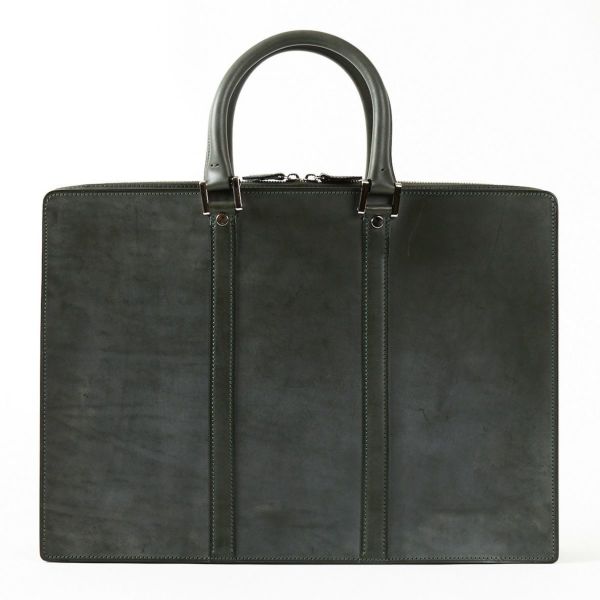 ビジネスマンのため、一味違う普段使いのビジネスバッグとして企画した一品。 革の質感や雰囲気をより味わっていただくために、デザインや装飾の無駄を一切削ぎ落とし、また極力異素材を使用せず、革そのものを縫い合わせて作っています。 さらにバッグの輪郭を成すコバの処理には通常よりも時間を費やし、より革の純度を上げています。