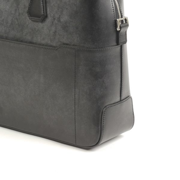 15年振りのブライドルレザーのビジネスバッグの新作であり、ビジネスバッグの王道であるブリーフケースの新作となった今回の企画するにあたって、私たちが考えたのが「これまでにないブリーフケースのカタチを目指そう」ということでした。 ブライドルレザーを使ったブリーフケースと言えば、革の硬さゆえに加工が難しいことから、必然的に平面的なフォルムがほとんどでした。これまでは私たち作り手もそれが当たり前だと考えていましたが、「固定概念を壊した先にこそ進化がある」と、新たに挑戦したのがこちらのブリーフケースになります。