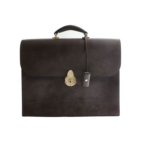 外側にポケットを一切備え付けることなく、背胴から止め具までを最高品質のブライドルレザー一枚革で覆うことにより、贅沢かつ重厚で美しい曲線を実現。 万双の職人の技術を惜しみなく注ぎ込んだ一品になります。 ここまでクラシックかつ本格的なブリーフケースは、本国英国でもほとんど見かけることがなくなりました。 オフィススタイルのカジュアル化やリモートワークの推進などにより、ブリーフケースの製作を断念するメーカーが後を絶ちませんが、クラシックバッグにこだわってきた者の意地として、万双はこれからもブリーフケースを手がけ続けていきます。