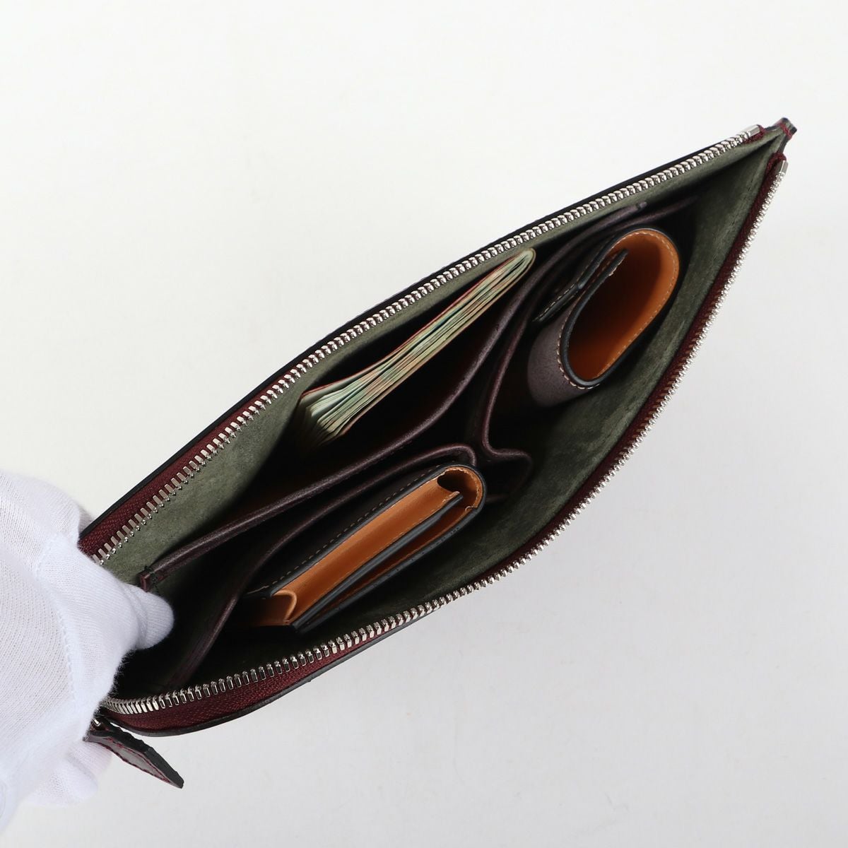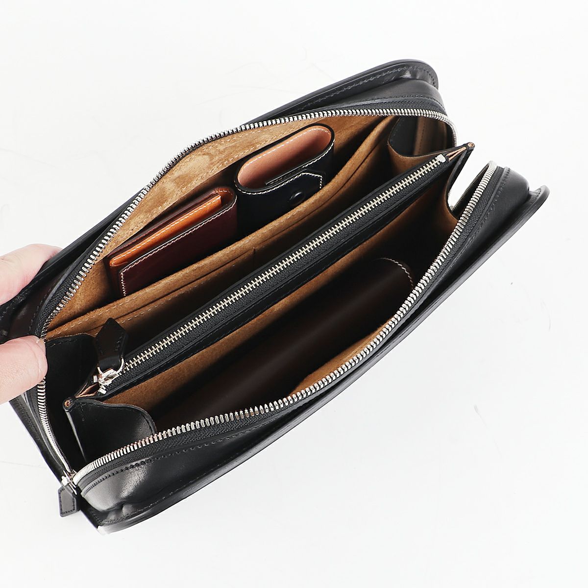 ダブルファスナー仕様の「セカンドバッグ」は、2室を備えマチ幅もあり、アイテムを分けて収納できるのがポイント。ふっくらとしたポーチ型でソフトな印象です。