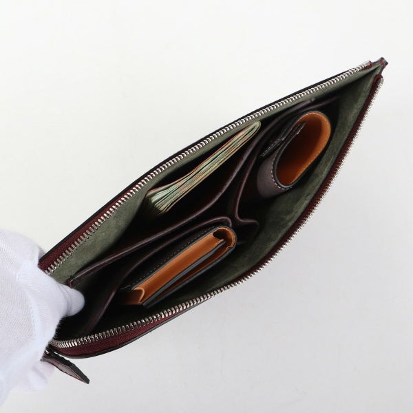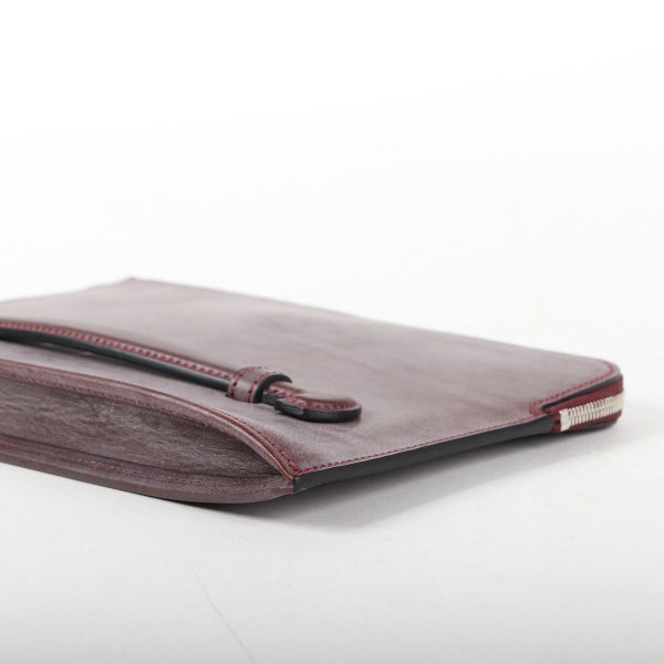 シンプルで悪目立ちしない意匠ながら、存在感がある。それが「万双らしいクラッチバッグ」と考え、こちらを商品化いたしました。 底マチをつけることで収納力にゆとりをもたせるだけでなく、ブライドルレザーの硬さとの相乗効果により、タブレットなどの荷物を入れても自立することで、常に凛とした佇まいをお楽しみいただけます。