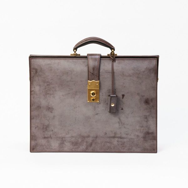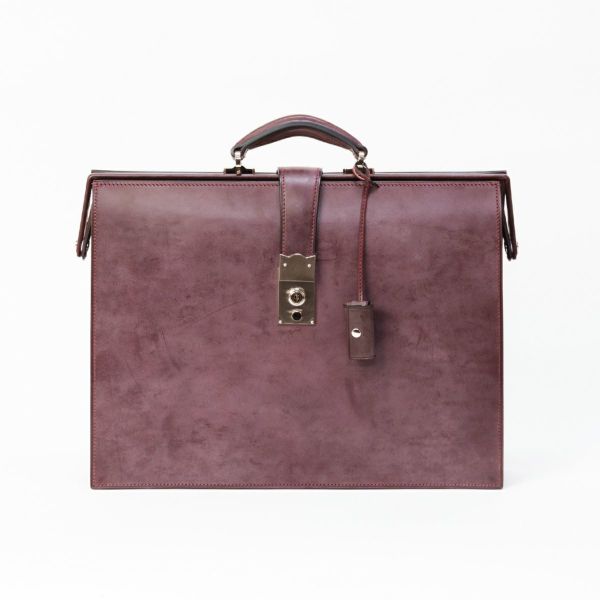 全く独自の規格で作り上げた、フルオリジナルのダレスバッグです。 ご覧の通りダレスバッグらしい威風堂々感を残しながら、ブリーフケースのようにスマートなところが特徴です。 ボディ全面には他のダレスバッグ同様、本物の英国製ブライドルレザーを使用。 また一般に流通しているバッグであれば持ち手の芯にアルミ製品を使用するところ、こちらは何枚もの革を重ね合わせているため、使い込むほどに手に馴染むなど革の素晴らしさを十分に堪能できます。