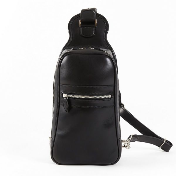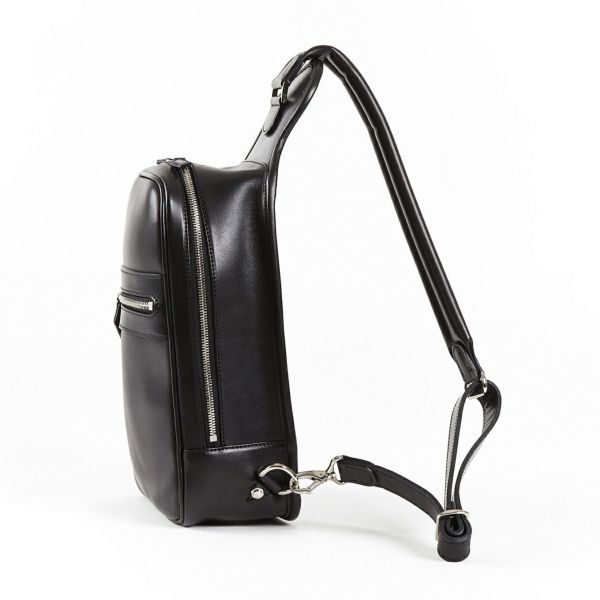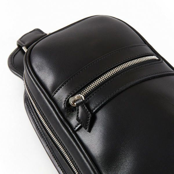 ワンショルダーバッグというと軽快な印象が強いものが多いですが、こちらはサイズを大きくする一方で、あえて金属の質感を抑え「革の塊感」を前面に出す仕上がりに。 ジャケットスタイルでも違和感のない、大人のためのショルダーバッグに仕上がったと自負しています。