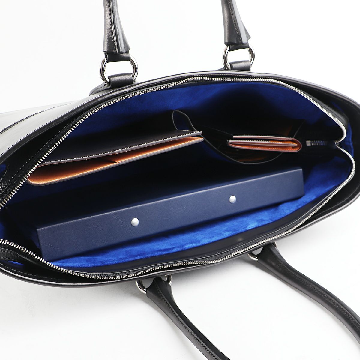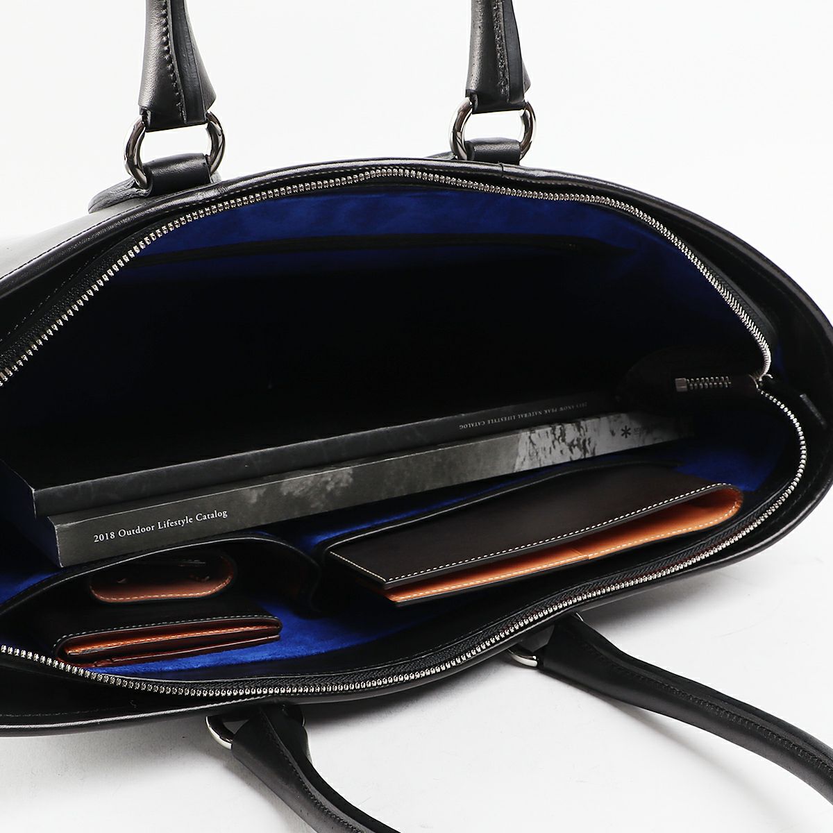 それぞれの革の性質を十分に理解した上でその質感や風合いを活かす製品づくりを心がけています。ビジネスシーンはもちろんデイリーユースにもおすすめの万双のトートバッグ。