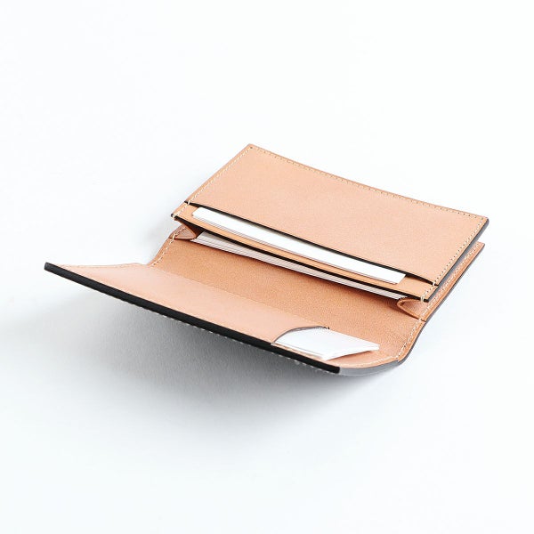 名刺入れx1、ポケットx3を装備しており、収納力と名刺の取り出しやすさも魅力的。 名刺入れ部は名刺を40枚ほど余裕で収納できるので、いただいた名刺の保管に活用される方も多いです。