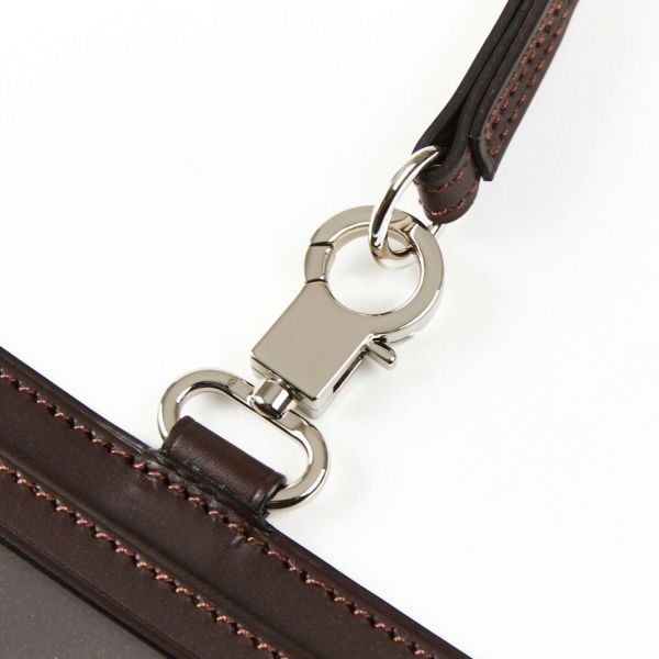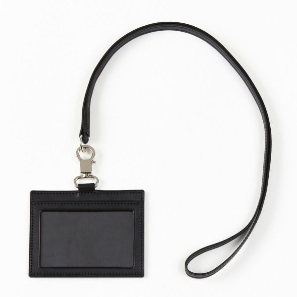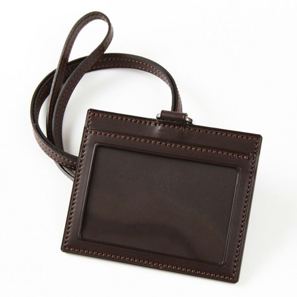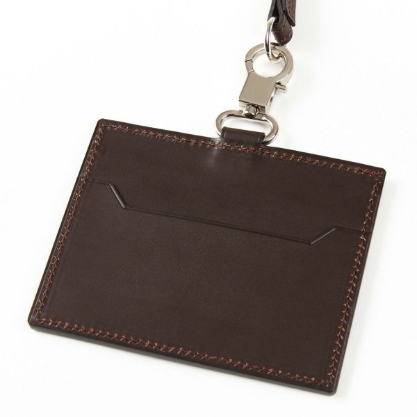 こちらのIDケースは、革部分については異素材を使用する事なくブライドルレザーのみで組み上げています。と聞くと「頑丈なぶん分厚そう」と思われる方もいらっしゃるかもしれませんが、革の床面を極限まで鋤き、2枚合わせに圧着しても厚さ4ミリという薄さを実現しました。 IDカードを入れるポケット以外に、裏面にもカード入れを装備。 ストラップ もブライドルレザー製で48cmと長すぎず短くない長さにしています。