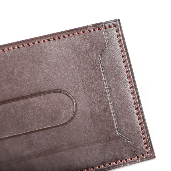 「スーツの胸ポケットに収めても違和感がないパスケースが欲しい」という客様のご要望にお応えして作製したパスケース。 ブライドルレザーのみで組み上げた贅沢な作りですが、無駄な膨らみが出ないように納得がいくまで型紙を調整。SUICA/PASMO/ICOCAなど非接触型定期券でも取り出さずに反応するよう考慮しています。