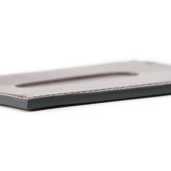 手間ひまをかけて丁寧にコバ処理がされている製品は、コバが傷ついてしまっても何度でも磨き直しが可能なため、何十年と使用された製品も、コバ磨きをすることで再び輝きを取り戻し、長くお使いいただくことができます。 こちらのパスケースのように分厚いブライドルレザーを重ね、ズレないよう貼り合わせてコバを磨き上げるのは、非常に手間のかかる作業を必要とします。