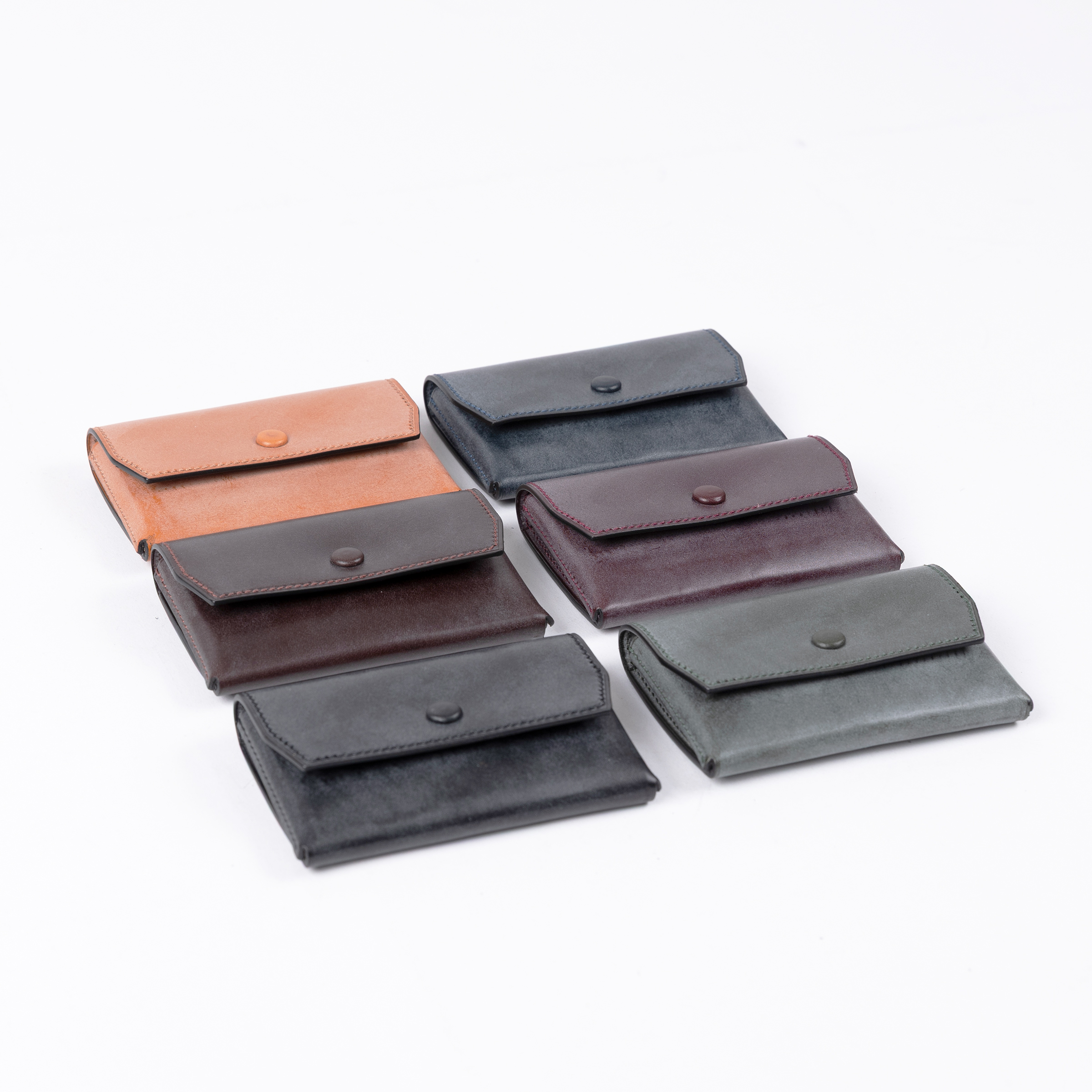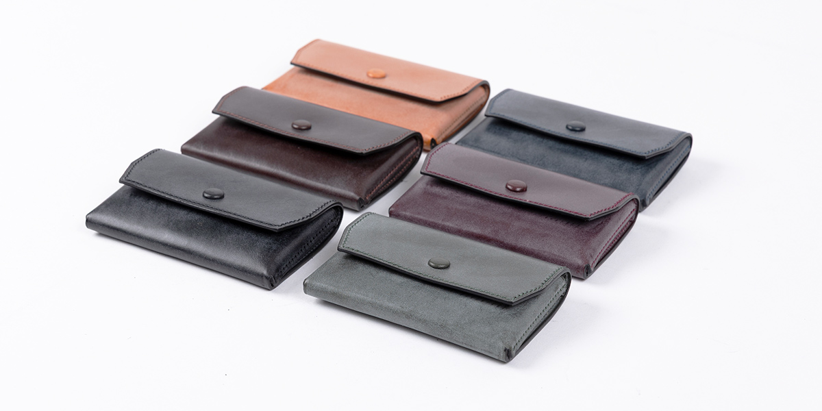 しかし、何度もサンプルを作成することで適正な革の厚みを探り出し、さらに高度な癖付け技術の習得やミシン針の微妙な調整など、職人のたゆまぬ向上心と工夫により、さまざまな問題をひとつずつクリア。内装にもブライドルレザーを使いながら、シャープな印象の名刺入れの製品化が可能になりました。