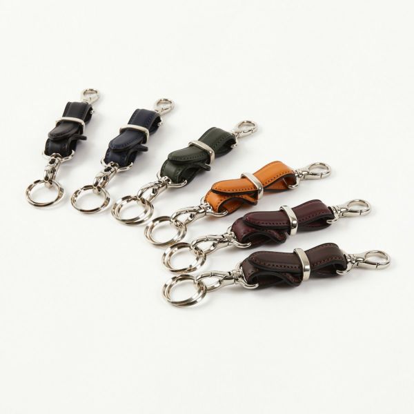 ダレスバッグなど、高級バッグの素材として用いるブライドルレザーを使用した贅沢なキーホルダー。 「革素材」「縫製」「金属の質感」の3つをセンス良く融合させることが「万双らしさ」と自負し、小さいながらもそれらを満たした万双の製品のひとつになります。