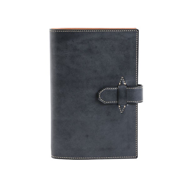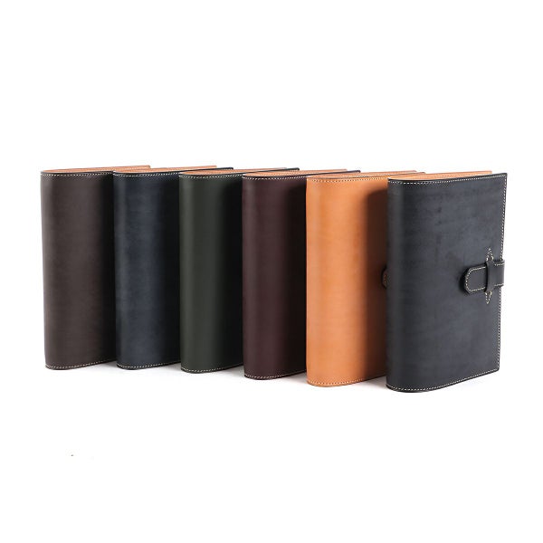 表革はブライドルレザーの一枚革、内装は全てヌメの革張りにした非常に耐久性に優れた一品。 表革に芯材などを用いハードカバー本の表紙のような手帳をよく見かけますが、万双では一枚革にし、さらに手帳に革以外の素材を一切使用しないことで、革の柔らかさを最大限に表現。 ベルトにもホックなどの留め具を一切使用することなく、革の摩擦のみでスッととまる設計にこだわりました。 片側にあおりポケット×1、もう片側にスリットポケット×1とカード入れ5段、さらにカード段裏にも隠しポケットを装備するなど、打ち合わせや商談に必要な機能を装備しています