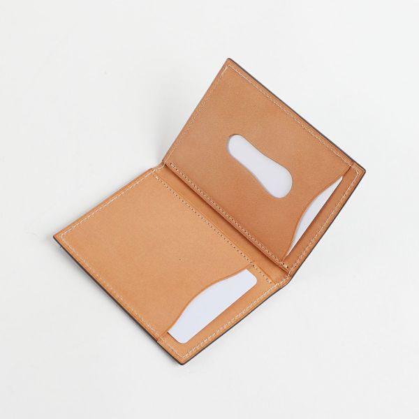 外装に高級ブライドルレザー、内装には経年変化の楽しめるヌメ革を採用していますが、革の厚みは、SUICA/PASMO/ICOCAなど非接触型定期券でも取り出さずに反応するよう考慮しています。