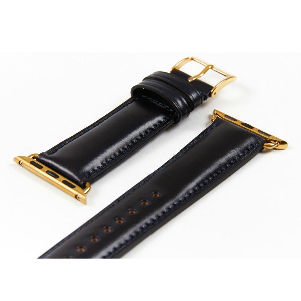 幅は44mmと40mmの2種類ご用意(※シリーズ4以降のApple Watch規格です)。 バックルとアダプターは、シルバーとゴールドのどちらかをお選びいただけます。 革のカラーは「ネイビー」「ボルドー」の2色をご用意。複数持ちして使い分けるのもお洒落ですね。