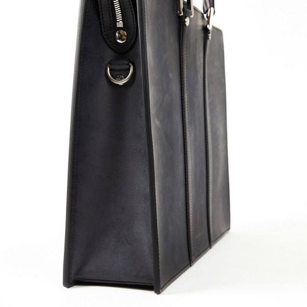 ビジネスマンのため、一味違う普段使いのビジネスバッグとして企画した一品。 革の質感や雰囲気をより味わっていただくために、デザインや装飾の無駄を一切削ぎ落とし、また極力異素材を使用せず、革そのものを縫い合わせて作っています。 さらにバッグの輪郭を成すコバの処理には通常よりも時間を費やし、より革の純度を上げています。