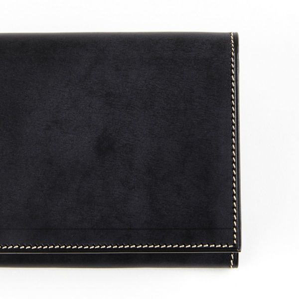 「スーツに合う、シンプルだけど高級感のある長財布」。このコンセプトを実現するために考案したのが、表側をブライドルレザーの一枚革で構成するという贅沢な仕様でした。 また内装も、蛇腹状に折込まれたマチの美しさを徹底的に追求。 一切無駄のない、洗練された長財布が完成したと自負しています。