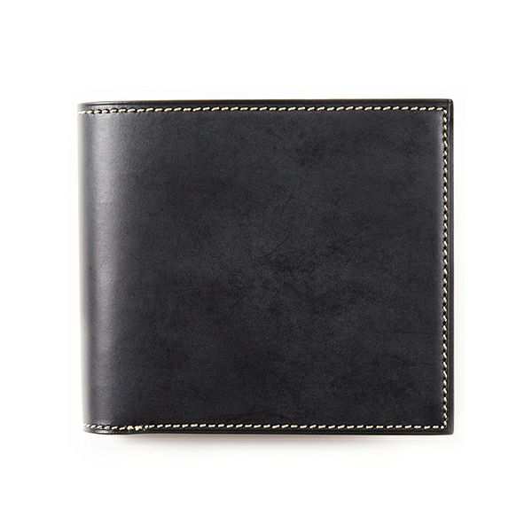 多くの二つ折り財布の小銭入れ部分はポケットタイプがほとんどで、下の方に入りこんでしまった小銭を確認するのに一苦労。 その点こちらの二つ折り財布はボックス型の小銭入れを実装、開いてすぐに中の小銭が確認できるようになっています。 お会計時に小銭を探すのに苦労した、という方に是非おすすめしたい一品です。