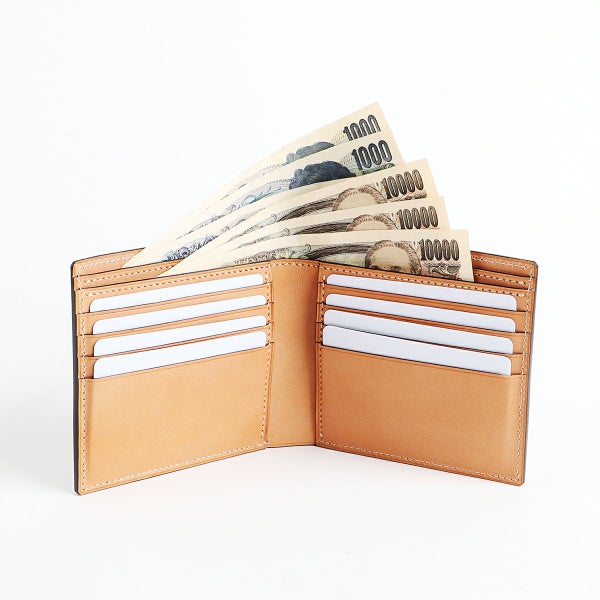 外側の革は立派でも、内装やパーツの素材とのバランスが悪いと財布全体に張りがなく、使っていくうちに萎れたような雰囲気になってしまいます。 こちらの二つ折り財布は革をふんだんに使用しているため、手に持った時の「革の手応え」が圧倒的で、使い込んでもヘタれることなく、長い期間ご愛用いただけます。