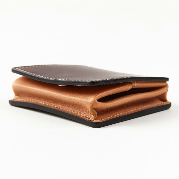 ボックス型小銭入れの場合、もっとも懸念すべきは「小銭もれ」と呼ばれる現象。構造上、革が馴染んでくると蓋の隙間から中の小銭が出てきてしまう恐れがあります。 この問題を解決するために試行錯誤を繰り返し、革が馴染んでもフォルムが崩れない革の組み方や縫製を発見。長年の使用に耐えうるボックス型小銭入れを完成させました。