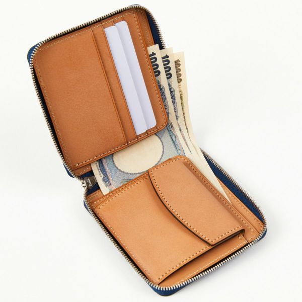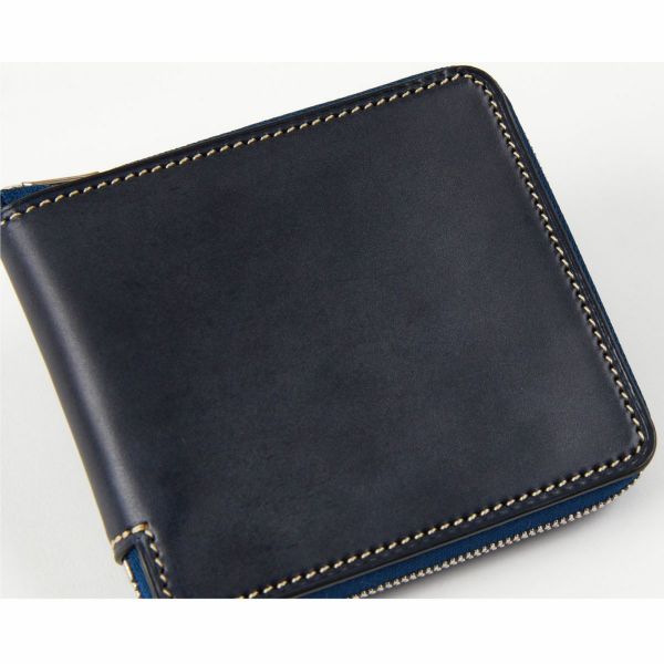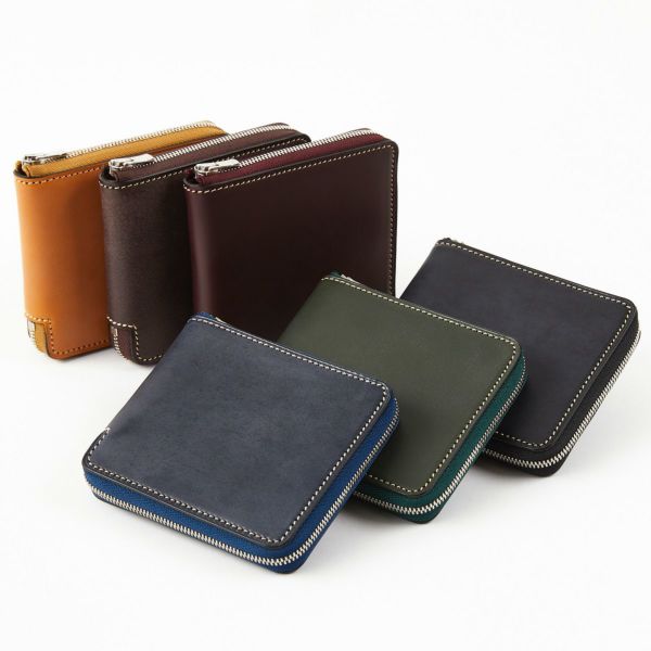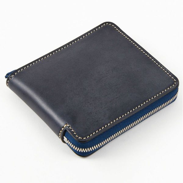 ”ポケットに入るラウンド財布”をコンセプトに、利便性と造形美を両立させるファスナー付き二つ折財布。 二つ折りのサイズの魅力や収納力を残しながら強度を上げているので、通常の二つ折り財布以上にガシガシとお使いいただけます。