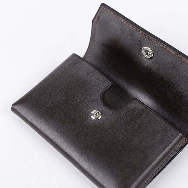 これまでの名刺入れは、内装のパーツにヌメ革を使用してきましたが、こちらは、よりブライドルレザーの重厚感や迫力を打ち出すために、全面にブライドルレザーを使用しています。