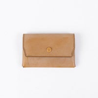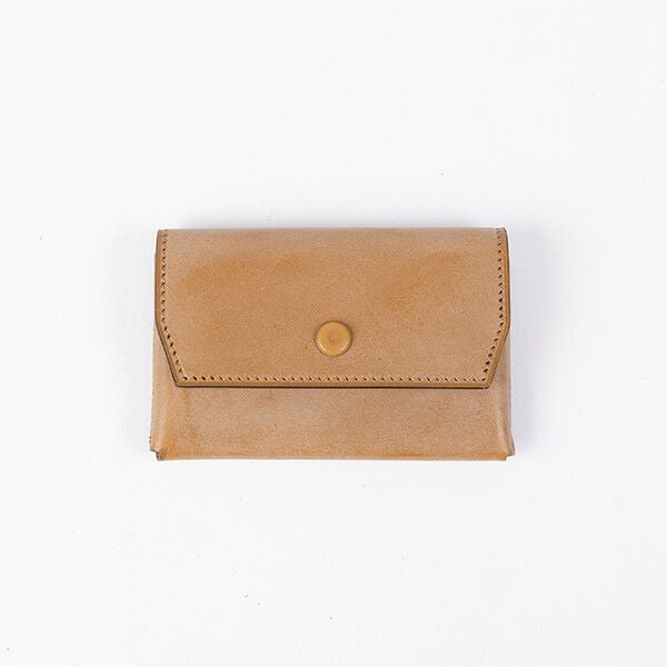 こちらの名刺入れは、革の縁に細く深いライン(溝)を引く「捻(ネン)引き」をカード段の縁などに施しています。 捻(ネン)は装飾的な意味もありますが、コバ磨きで使う蜜蝋を革の中まで染み込ませることができ、コバの毛羽立ちを起きにくくし、さらに耐水性を上げる効果があります。 またコバが傷ついてしまっても何度でも磨き直しが可能なように、手間ひまをかけて丁寧にコバ処理を施しています。 いずれも作業としては非常に手間がかかりますが、長い間使っていただくためには、こうした細かい作業の積み重ねが必要だと考えています。