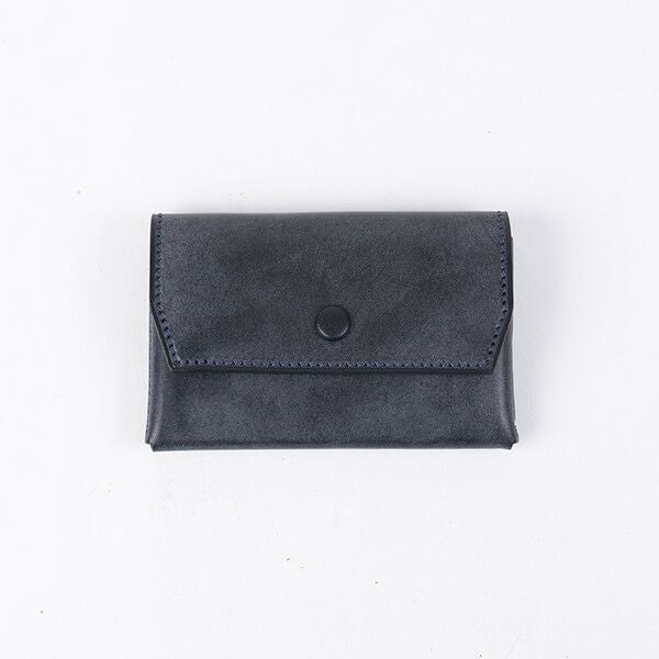 しかし、何度もサンプルを作成することで適正な革の厚みを探り出し、さらに高度な癖付け技術の習得やミシン針の微妙な調整など、職人のたゆまぬ向上心と工夫により、さまざまな問題をひとつずつクリア。内装にもブライドルレザーを使いながら、シャープな印象の名刺入れの製品化が可能になりました。