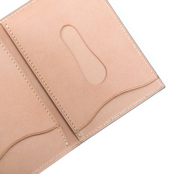 外装に高級ブライドルレザー、内装には経年変化の楽しめるヌメ革を採用していますが、革の厚みは、SUICA/PASMO/ICOCAなど非接触型定期券でも取り出さずに反応するよう考慮しています。