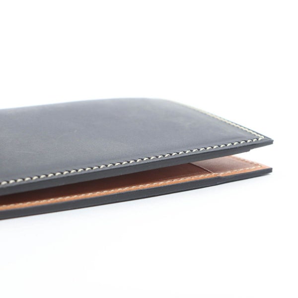 手間ひまをかけて丁寧にコバ処理がされている製品は、コバが傷ついてしまっても何度でも磨き直しが可能なため、何十年と使用された製品も、コバ磨きをすることで再び輝きを取り戻し、長くお使いいただくことができます。 こちらの定期入れのように分厚いブライドルレザーを重ね、ズレないよう貼り合わせてコバを磨き上げるのは、非常に手間のかかる作業を必要とします。