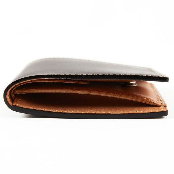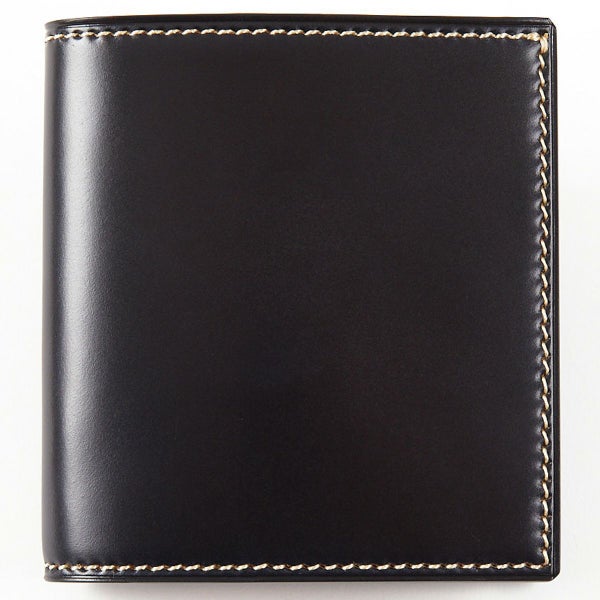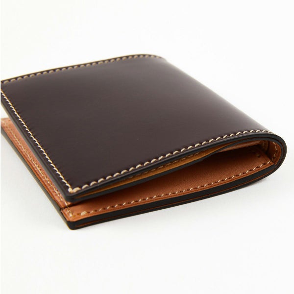 伝統的な水染め染色方法である「アニリン染め」が施されたコードバンを使用。原皮一枚より製品を2つしか製作できない一枚仕立ての逸品です。 使い初めはマットな表情ですが、ご使用いただくうちに革内部のオイルが表面に湧き上がり自然な光沢が現れます。 財布の場合は特に折り曲がりの部分にストレスがかかり起毛しやすいため、職人が事前に屈曲性を確認しながら最適な部位を選んで使用。 これにより、どんなに使い込んでも、コードバン特有の艶や光沢をお楽しみいただけるようになっています。
