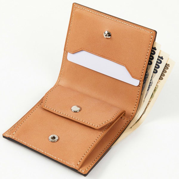 | 機能 | 札入れx1、カード入れx1、小銭入れx1、ポケットx1を装備。カード入れにはクレジットカードや交通系ICカードなどを3枚収納可能。小銭入れ裏にもカードを入れられるスペースを備えています。 |