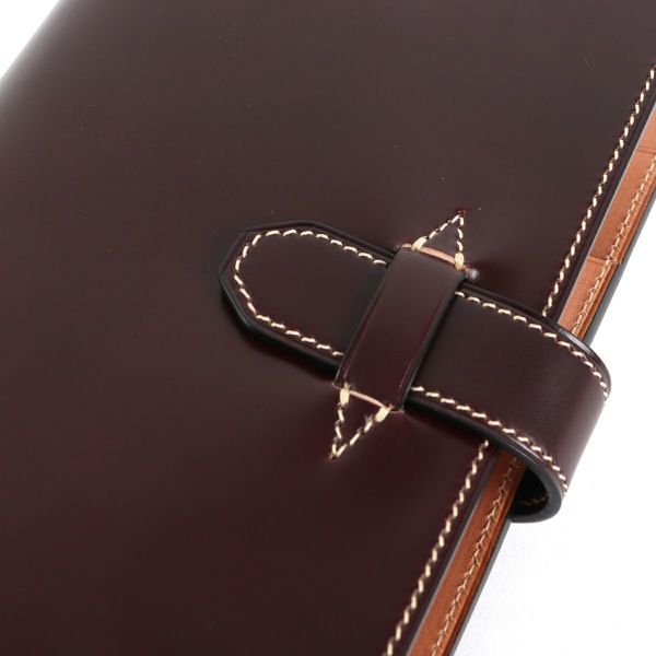 伝統的な水染め染色方法である「アニリン染め」が施されたコードバンを使用。 使い初めはマットな表情ですが、ご使用いただくうちに革内部のオイルが表面に湧き上がり自然な光沢が現れます。 折り曲がりの部分にストレスがかかり起毛しやすいため、職人が事前に屈曲性を確認しながら最適な部位を選んで使用。 これにより、どんなに使い込んでも、コードバン特有の艶や光沢をお楽しみいただけるようになっています。