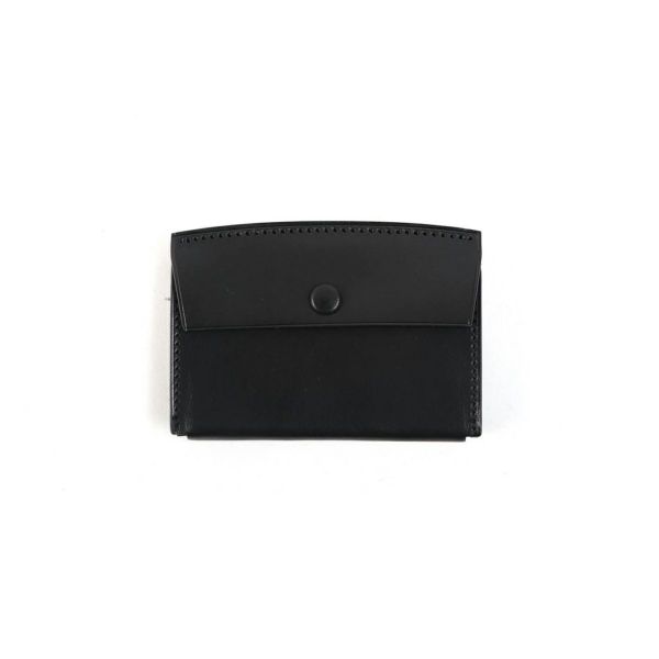また、世に出回っている革小物の多くはマチと胴面を縫い合わせた単層構造ですが、こちらはマチ面の一枚革を胴面の革で包みこんだ二重構造仕上げに。