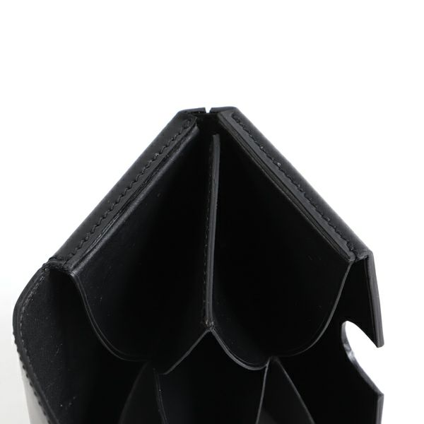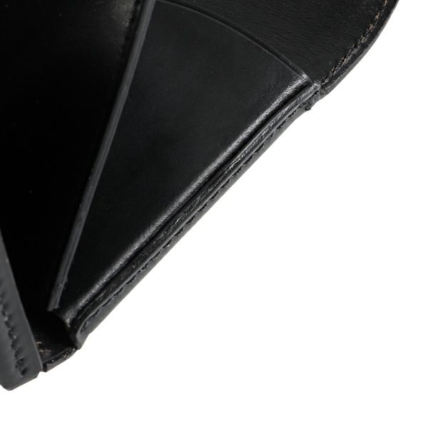 こちらの名刺入れは、革の縁に細く深いライン(溝)を引く「捻(ネン)引き」をカード段の縁などに施しています。 捻(ネン)は装飾的な意味もありますが、コバ磨きで使う蜜蝋を革の中まで染み込ませることができ、コバの毛羽立ちを起きにくくし、さらに耐水性を上げる効果があります。