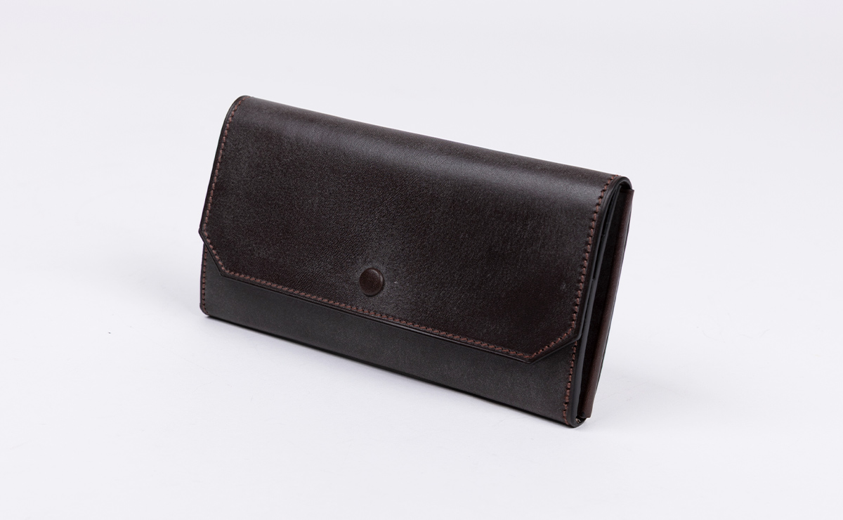 新喜皮革の「オイルコードバン」には、表面にグレージング加工が施されたタイプと、表面加工が施されていないナチュラルなタイプが存在します。 いずれも、コードバンとしてはサラッとした風合いが特徴ですが、グレージング加工がされたものは潤沢な光沢により、他の革素材とは一線を画した質感となっています。 また名前のとおりオイルをしっかりと浸透させているので、折り曲げへの耐久性が高く、さらに染料のみのアニリン仕上げによる、自然な高級感が魅力です。 エイジングの特徴は、より深い経年変化を楽しめるところ。日々使ううちに革表面に塗られたオイルが深くまで浸透し、透明感と艶と光沢をキープしながら、絶妙な色合いや質感の移り変わりを楽しめます。 その一方で、表面は傷付きやすく、また雨に濡れると表面の光沢がなくなります。ただし、いずれも適正なお手入れをすればある程度は回復できますので、ご心配なく。