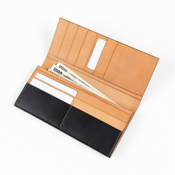 紙幣を楽に15枚ほど収納可能な札入れ部分と、カード類は10枚、さらにチケット類を収納できるポケットを装備。 小銭入れを実装していないぶん、よりスマートに使いこなせる長財布となっています。