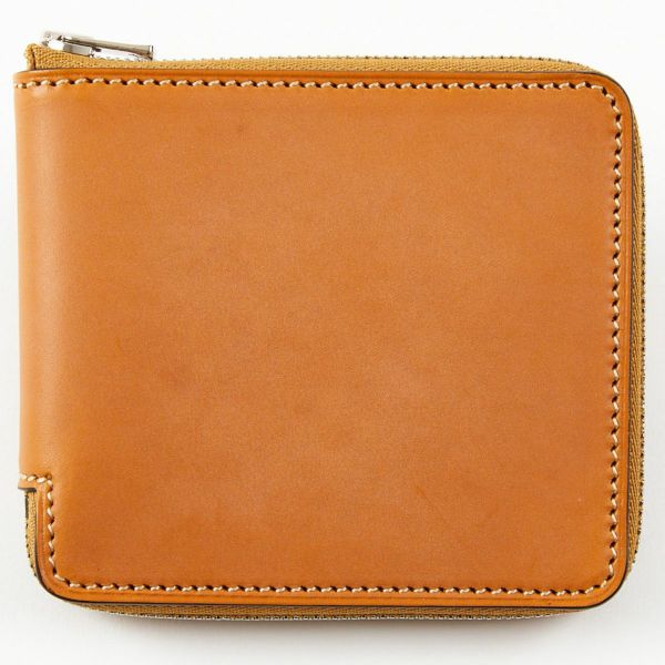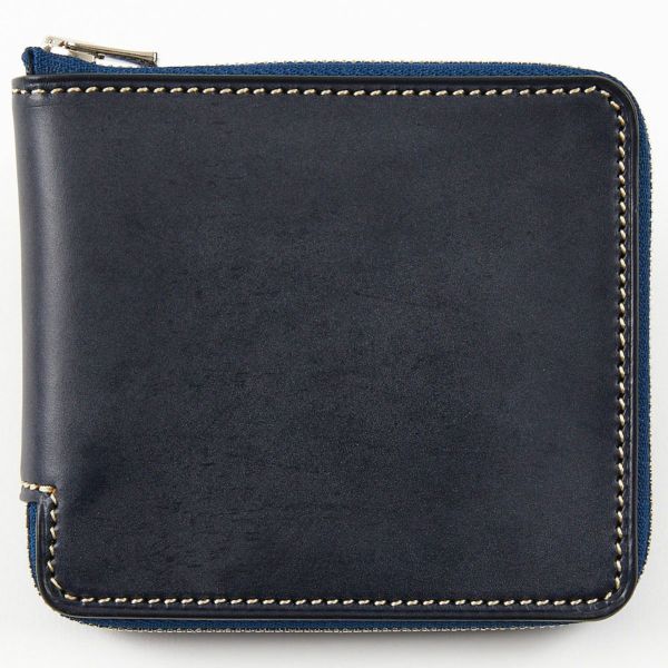 ”ポケットに入るラウンド財布”をコンセプトに、利便性と造形美を両立させるファスナー付き二つ折財布。 二つ折りのサイズの魅力や収納力を残しながら強度を上げているので、通常の二つ折り財布以上にガシガシとお使いいただけます。