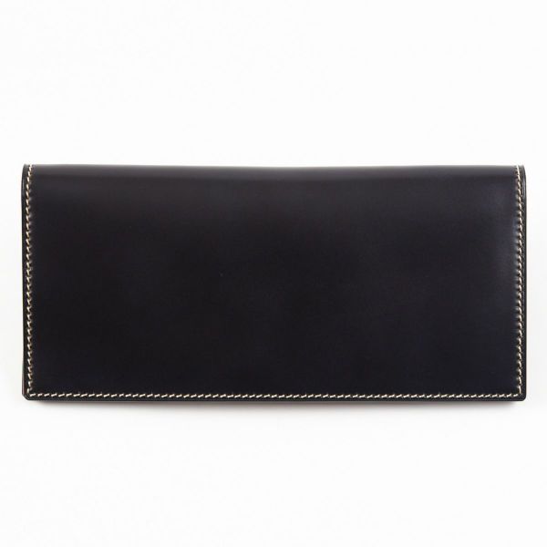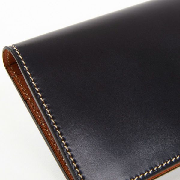 最近では革好きの方だけでなく、一般のお客様からも要望が多いコードバンの財布。 希少性の高さから、「革の宝石」と称される独特の透明感を最大限に引き出したい。この想いを最優先に考え製作したのがこちらの長財布になります。 あえて内装に蛇腹状のマチを採用せず徹底的にスマートさを追及。スーツに合う洗練されたフォルムにコードバンの輝きが最大限にマッチしています。