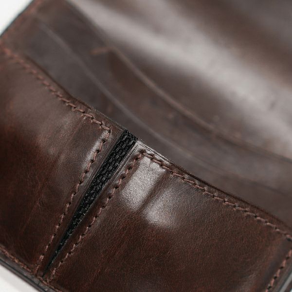 さらにシェルコードバンは、折り曲げなどへの耐久性を高めるために油分を十分に浸透させており、他のコードバンよりもしっとりした風合いが楽しめます。